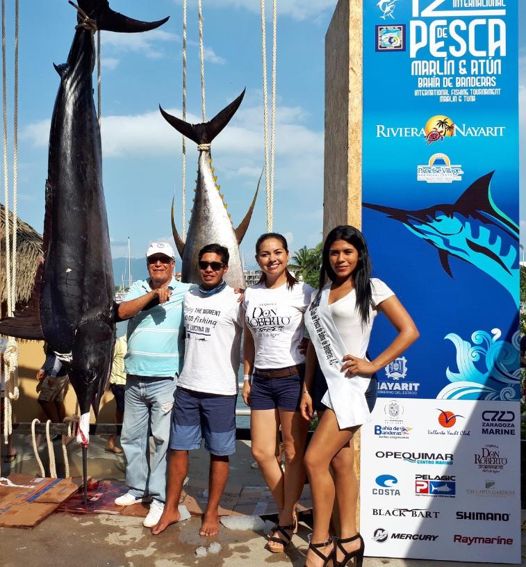 | Puerto Vallarta tournament fishing report July 26,27,28 2018. This was the 12th Annual Tuna and Marlin Tournament and was held at Paradise Village resort in Nuevo Vallarta. Captain Cesar Perez won 1st place Yellowfin Tuna with a fat 231 lb pig the crew caught the Tuna the first day of the fishing tournament aboard the Niki Pao boat. 1st Place Marlin weighed in at 477 lbs and was caught aboard the Lucina 3. Congradulations to all the fishing winners and teams that participated in this year's tournament and we will see you next year. For more info about Puerto Vallarta fishing please email us direct at info@puertovallartafish.com |