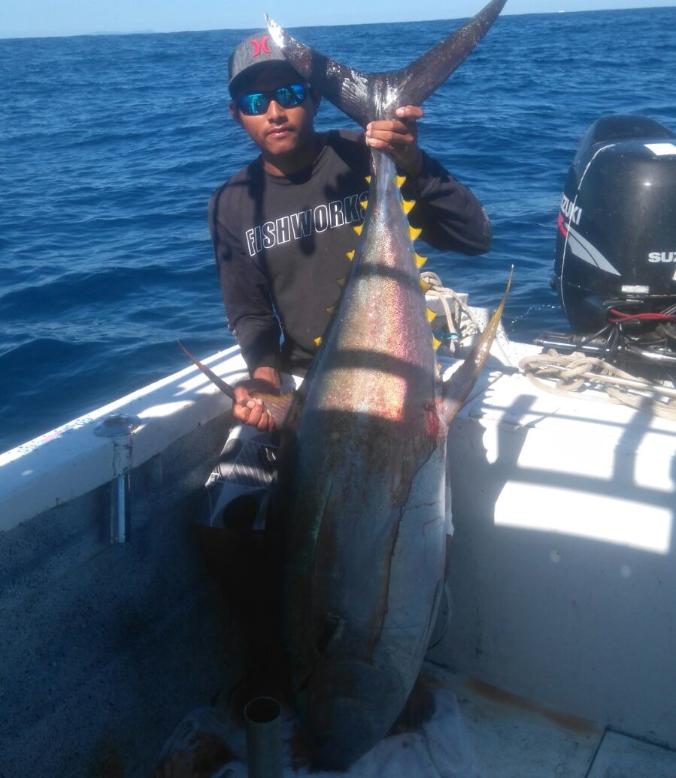 | Big Yellowfin Tuna fish caught at el banco on the Super panga Pacific with captain Cesar Perez and angler Jim Pollack January/19/2016 |