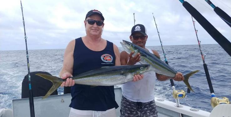 | Puerto Vallarta fishing report October 2019 Hi everyone We have had another great month of fishing here in Puerto Vallarta Mexico. The Month started off great with the 7th international catch and release Sportfishing Tournament that was held in La Cruz de Huanacaxtle Marina. Captain Cesar Perez won 1st place team for catch and releases of Blue and Black Marlin, Sailfish and Dorados See video below. The Blue and Black Marlin have been biting outside of Corbetena and El Banco on 12 hour fishing charters. Sailfish and Dorado have also been biting offshore as well as closer to Punta de Mita which you can do on a 8 hour fishing charter. The big Yellowfin Tuna continue to bite past the 2nd island about 90 miles offshore on 2.5 day fishing charters the average Yellowfin Tuna on overnight trips has been 80-250 lbs. The 64th Annual Marlin and Sailfish Tournament will be held November 13-16 this year in the Marina Vallarta. Inside Banderas bay on 4 and 6 hour fishing charters we have been catching Jack Crevalle, Needlefish, Skip Jacks, and small Dorado. For aa more updated Puerto Vallarta fishing report you can email us direct at info@puertovallartafish.com and be sure to follow us on all platforms Facebook Instagram Youtube Twitter |