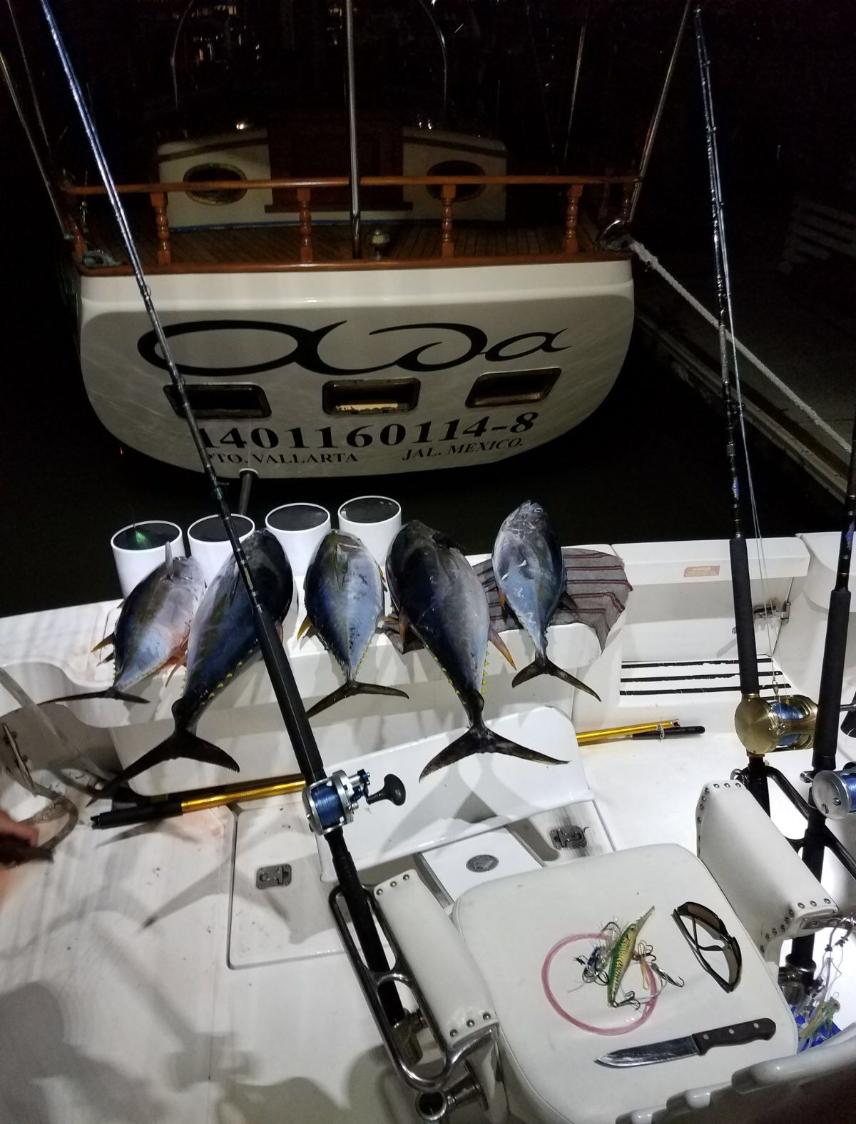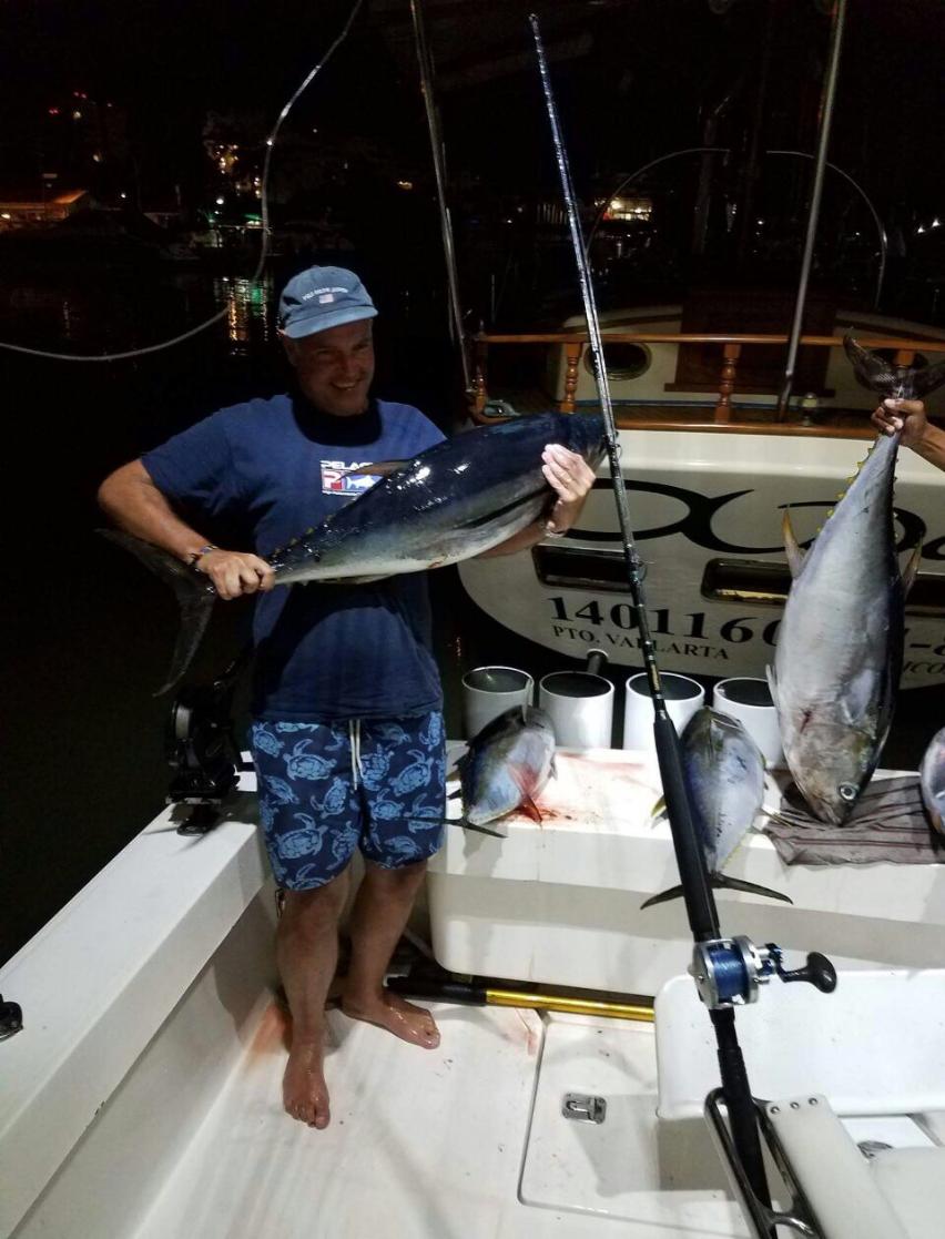 | Puerto Vallarta fishing review August 2017 I fished on the 34ft Luhrs on the 23rd August 2017 with captain Cesar and had a great day out In the am we targeted Black Marlin without any luck but our live baits got hit by sharks on many occasions but they bit through the line in the end we caught one of these a 200lb Bull shark which we released. In the pm Cesar saw Yellowfin jumping in the distance and we went after these and ended up catching 4 up to 60/70lbs and lost a much bigger one. Overall a great day and the crew were very skillfull and knowledgeable. Paul Jarvis |