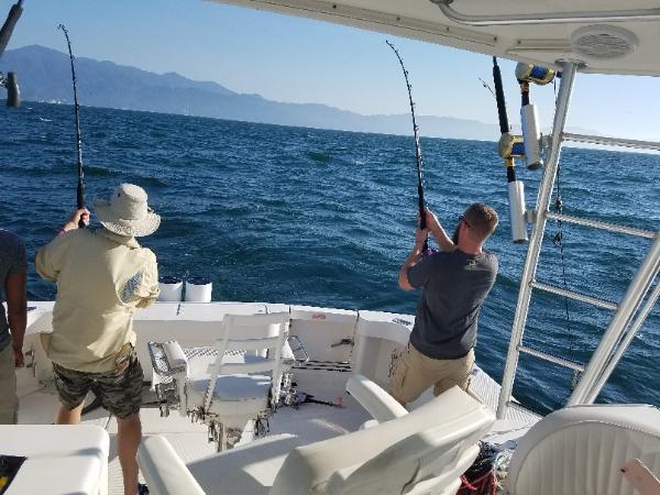 | Puerto Vallarta fishing client review February 06 2017 My family and I recently went on vacation in PV and as usual, I made sure we spent a day out fishing. This year we went with Captain Cesar and his mate Jose with PV Sportfishing charters. The Nicky Pao . We met Cesar at the marina and he helped us carry our gear to the boat, which was impressive. Not only was it the nicest and cleanest charter I have been on, it was well equipped. Although fishing reports outside the bay have been slow, we were determined to go after the big one. The crew was polite and accommodating. The whole time they were working hard to find us fish, and they did not fail! After hours of searching, we landed my first ever Striped Marlin measuring 97"! Something I have been wanting for years! Being no other charters were spotting/catching fish and we got what we came for, we decided to go back into the bay for some quicker action. We hooked into some hard fighting Jack Crevalle and the action was non-stop one after another! Besides the catches, we saw shark, sea lion and lots of whales. To my knowledge, we were the only boat to catch fish that day, and no one at the marina seemed surprised it was Cesar who made it happen! I have been on a few deep sea fishing charters in the past and I would say this is by far the hardest working, most knowledgeable crew I have been with and to top it off, they have the right boat and equipment to get the job done. Thanks for the great trip and we will definitely be back in season for some Blues! REVIEW BY Joe Klemmetsen |