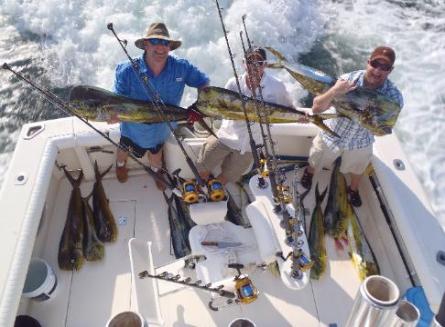 Puerto Vallarta fishing review January 2014 We caught 5 Mahi Mahi while we fishing in the rain with captain When you fish for Mahi Mahi you only troll so be prepared to sit and wait. Once you hook one, they are a great fight and fun. We also saw about 15 different whales and literally thousands of dolphins. The Capt stopped to let us watch the family of whales literally 30 -40 feet off the side of the boat. Just amazing... Callie G |