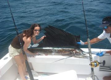 Damon salfish at the end of the trip was the best part. we were somewhat disappointed up to that point. the mahi mahis were fun to catch but didn't quite make the trip worthwhile. my husband will be talking about his sailfish for a long time to come and is already wanting to come back during the peak season. your guys were fabulous. they made great companions and were working so hard to make sure david brought that sailfish in. i hope we can fish with them again! thanks so much! it was a pleasure doing business with you and hope to see you again soon! Jana Millican 5/21/09 |