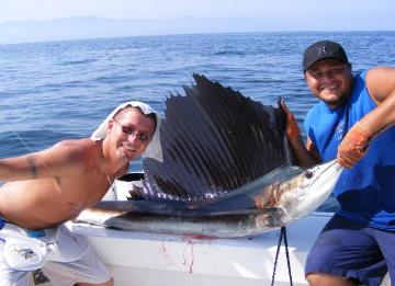 Puerto Vallarta fishing review June 2014 Just wanted to say a huge thanks to captain and the crew for an amazing day out on the Pacific (05/16/14). After 8 hours we had only caught some tuna and a huge Marlin broke the line!! We had almost given up catching anything else when, thanks to Cesar's quick reactions we caught two large sailfish!! I was delighted as I have always wanted to catch a sailfish. The whole day the crew were great and my wife, who doesn't fish, really enjoyed seeing the dolphins and turtles out at sea. The weather was perfect and the sea was calm. A perfect day. Chris and Eleanor Wylie |