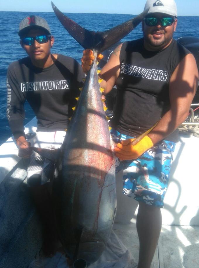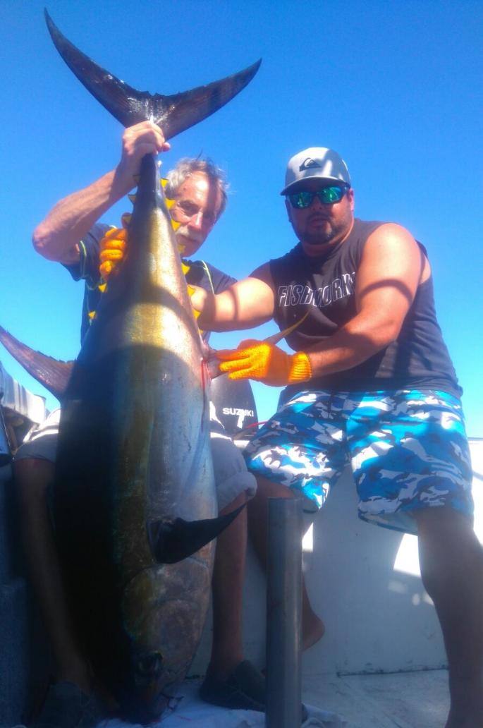 | Big Yellowfin Tuna fish caught at el banco on the Super panga Pacific with captain Cesar Perez and angler Jim Pollack January/19/2016 |
