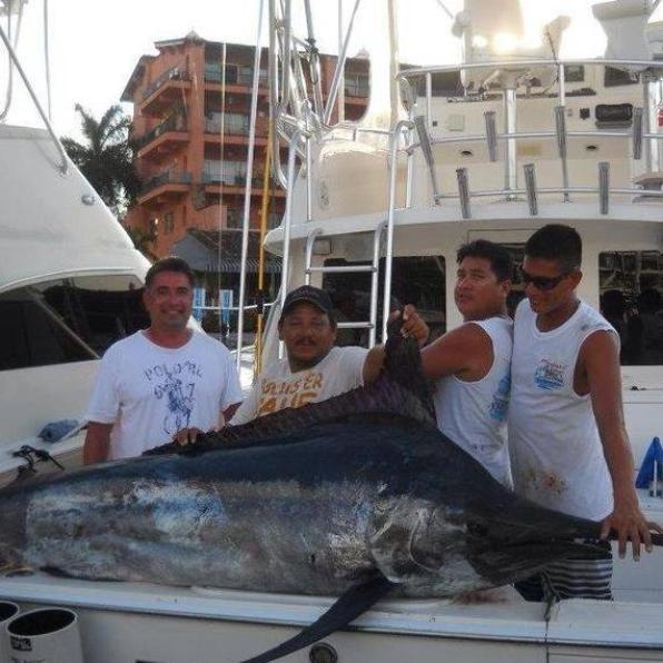 | Puerto Vallarta fishing report January 2016 Mahi and Marlin Mania offshore but dont take my word for it see our client fishing charter reviews below. review Marlin and Mahi I had the opportunity to go out on a 12 hour day of fishing with my wife, daughter and father on the"My Marlin," skippered by Steve Torres and crewed by Oscar This is the second year going out w Steve and he does not disappoint. Starting with Damon who does a great job in setting up the trip and communicating all neccessary details, I wanted to have the opportunity to catch a marlin as well as dorado. Steve and Oscar did an outstanding job letting us know what to expect and how the day would unfold. We trolled and had an early dorado hookup. Later Steve found floating debris and it was game on with the dorado. We caught five monster dorado (mostly bulls) I missed one. That gave us a total of 6 for the day. Other boats came to us after seeing our hookups. They weren't catching anything upon arriving; we had the right bait. The best was yet to come. After about 15 minutes of beginning to troll again, the marlin hit. With superior boat control by Steve, I was able to boat my first blue marlin after a 1/2 hour fight, weighing in at approximately 300 lbs. Right after it was over, Steve said, "Let's get another one." That's confidence. My family and I vacation in PV every Christmas and I would never consider another boat or captain. fishing charter review by Paul Sojkowski review Mahi mahi and Sailfish My father, brother in law and myself had a 10hr day aboard the Winner on December 28th 2015. We were able to catch 7 Mahi Mahi and 1 sailfish. Captain Caesar and crew worked very hard to get us our fish making this a day to remember! I highly recommend fishing with them if you are looking for a great fishing experience. fishing charter review by Patrick Patterson December is, according the several fishing calendars I checked, an excellent month for sport fishing in Puerto Vallarta, Mexico. As I was cruising with friends and wife to and from San Diego to Lima, with a stop in Puerto Vallarta in mid-December, one of my friends – an avid fisherman as am I – decided that we’d charter a boat to see if our acumen would be positively rewarded on the trip North at PV. Internet searching led me to PV Sportfishing, whose website offered a 31’ Bertram Sportfisherman, supposedly very well equipped. Their site and others also depicted the challenge facing one wishing to do billfish hunting: Banderas Bay, supposedly the second largest bay in the world, where it’s necessary to travel well over 20 miles from port to reach the hunting grounds of the marlin, sailfish or Dorado. This entails chartering for no less than 8 hours, as it’s a minimum of two hours out and two back at a good speed. The map of Banderas Bay published online by PV Sportfishing and others depicts the bay and the prime big game fishing spots: The Marietas Islands are 18 miles from the in-town marina; El Morrow is about 24 miles out, a bit north of the Marietas; La Cobretana is 36 miles out, and El Banco, (favored, with La Cobretana by many of the charter operators) is a whopping 50 miles from the PV dock. To make the decision more difficult, the charter rates are steep – at least for Mexico: 4 hours for $450 and 6 hours for $600 – but that limits one to fishing inside the bay and unlikely to raise any billfish or Dorado. Our choice was the 8 hour charter at $850, which would allow us to fish the Marietas and beyond. Arranging the charter was a snap: PV Sportfishing uses PayPal (one may use a credit card with PayPal’s secure system) to make a deposit, and I confirmed the date and time directly with the company by email, ordering drinks and box lunches at the same time. Efficient, pleasant, and all conducted in English before the cruise departed San Diego. We disembarked early, and the nearby pier was a $10.00 taxi ride away. So efficient was the process that we arrived at the “waiting area” of the Los Peines pier a half hour early. Our boat, the My Marlin (which incidentally “holds the record for the largest Marlin ever caught in a tournament in PV”), arrived with a pleasant and helpful English-speaking Captain – Steve Torres - and Mate – “Scubie.” After picking up our live bait (the boat had an excellent bait-holding tank, which kept the fish active for the entire day) and our box lunches, we motored out of the marina and were in moments well into the bay. The mate informed us that we had a 1 hour 45 minute ride to the billfish/Dorado area, so we settled back but were a bit surprised that the mate began the rod-rigging process after only an hour or so. The outriggers were deployed and 5 lines were streamed, two with lures and three with baitfish. At about 10:00 AM, one of the lines snapped out of the left outrigger, and I had a good-sized Dorado on. Almost immediately, another line sang out and we had a double-header going. Since I was in the right-hand fishing chair and my friend occupied the left, my line was immediately crossed with his. To simplify things, we switched rods, and worked our fish in. I boated mine first: about 25 pounds of jumping, flashing beautifully colored energy. My friend’s fish was a somewhat larger Bull, likely about 30-35 pounds, giving him a longer-lasting battle and the usual real tussle when it spied the boat. We were two-for-two, and the day was still young! Beware the feeling of euphoria: and, of course, that’s why the sport is called ‘fishing,’ not ‘catching – we continued to motor out well past the Marietas, to a distance of between 28 and 30 miles from PV – for over 4 hours before we had another strike. My rod bent, but I could immediately sense that this was a smaller Dorado. It never jumped, but rather sounded, and while fighting mightily for its life, was no match for the 80# test line and the Tiburon reel attached to the Calstar graphite rod. Unfortunately, that was the end of our ‘ca