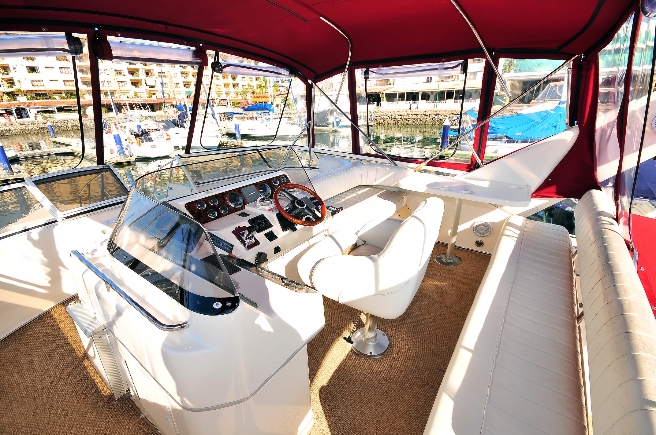 | Luxury 44 ft Yacht for up to 12 people 44 ft luxury air conditioned Sea Ray yacht equipped with 2 cabins, full kitchen, 1 bathroom with shower, salon with TV and Sound system outside there is comfortable place to get out of the sun under the Bimini top in the back with swim deck or lay out in the front and get a tan. tell me more Price in USD 4 hrs $1,300 USD 6 hrs $1,700 USD 8 hrs $2,100 USD email info@puertovallartafish.com for reservations |
